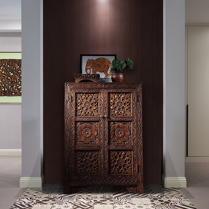Tai Domain Southeast Asian Style Solid Wood Retro entrance door Entry into the family Xuanguan Cabinet Tai-style Living room furniture storage Shoe cabinet