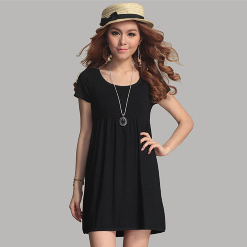Maternity dress summer dress 2021 new Korean version black professional maternity dress mid-length version short-sleeved cotton maternity dress
