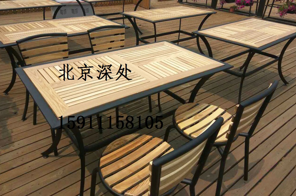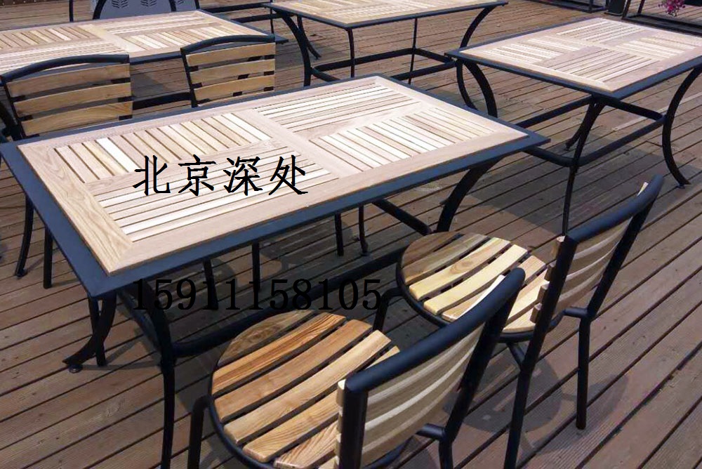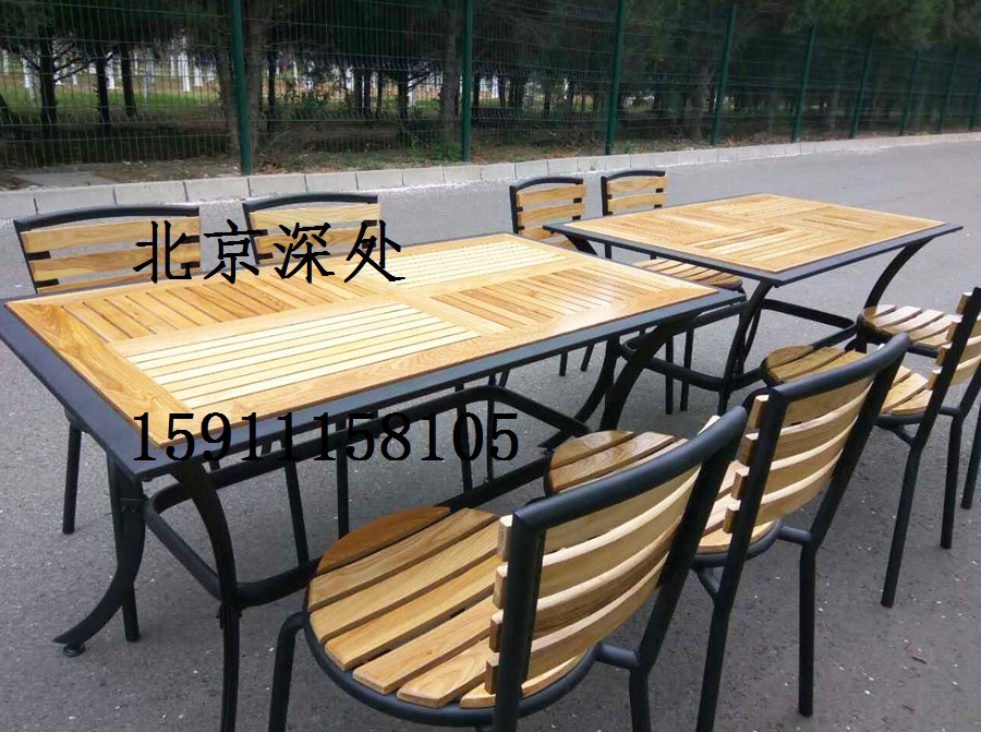Outdoor leisure table and chair iron solid wood chair long table stool restaurant anticorrosive wood courtyard table and chair balcony