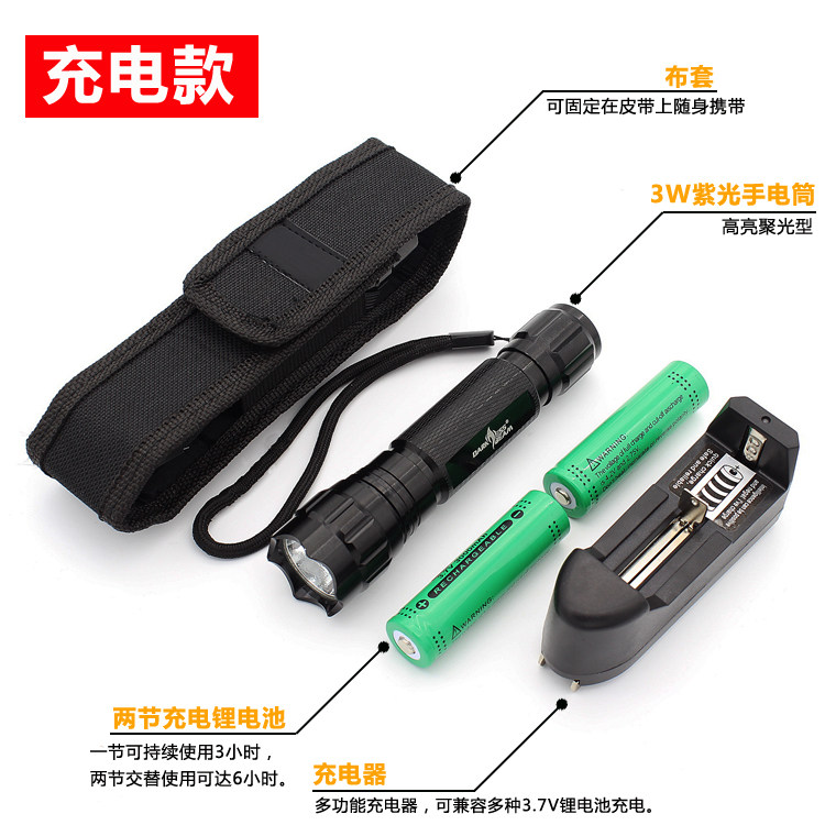 501B purple light flashlight (one electric one charge) 501B purple light flashlight (two electric one charge) 501B white light flashlight (one electricity and one charge) 501B white light flashlight (two electricity and one charge)
