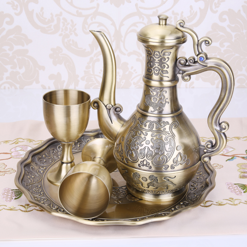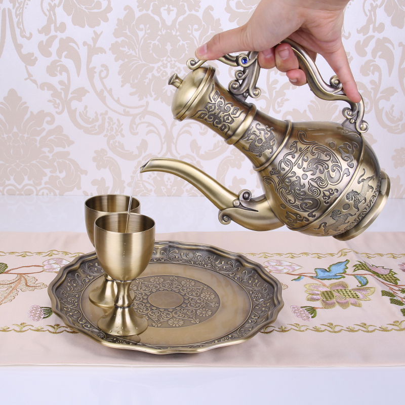 European-style wine set white wine red wine gift box retro goblet with tray Russian alloy creative wine jug
