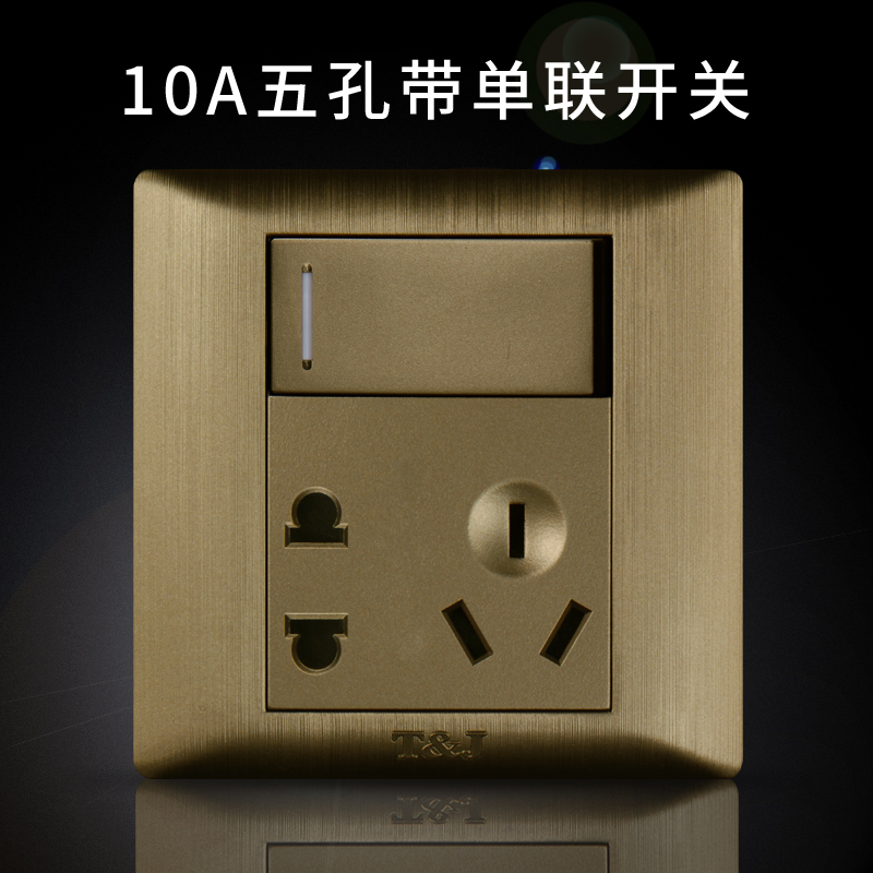 Shenzhen Tianji Electric Yue Ting series 86 type electrical switch socket panel sand gold brushed frame