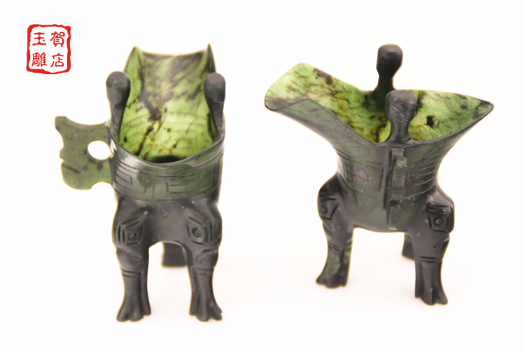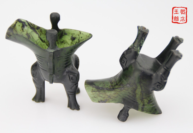 Jiuquan luminous cup Gansu large mandarin duck jade Qilian Jade ink jade wine glass Antique Jue cup Tiger leg Jue cup trumpet