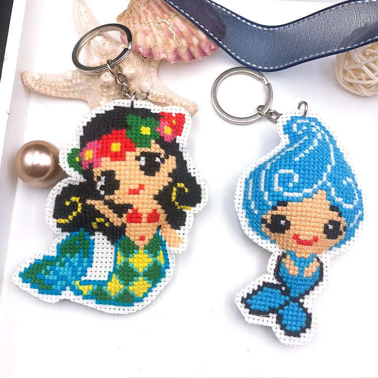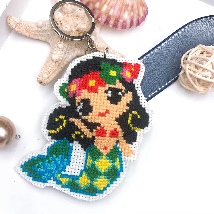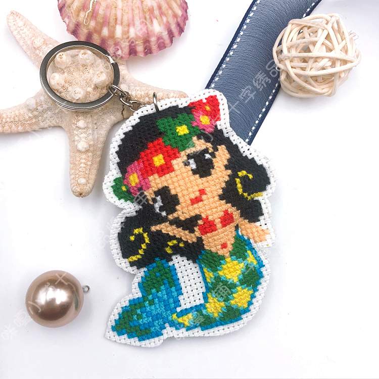 Three Miga Cross Embroidered Pendant Bifacial Embroidered Keyring Material Bag S494 Mermaid 1