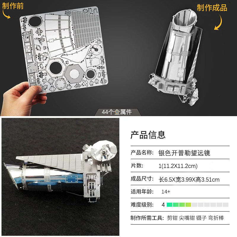 Steel mould like 3D gel-free solid metal assembled stainless steel puzzle model comprehensive miscellaneous Kepler telescope