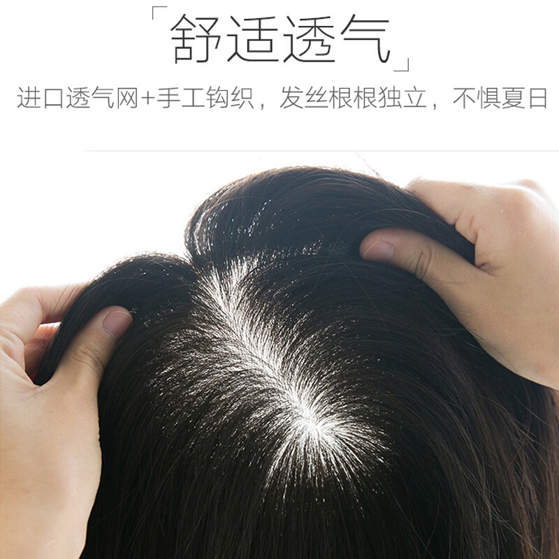 Full-truth hair full-hand weaving needle replenishment block female realistic wig replenishment cover white hair to make up for rare hair