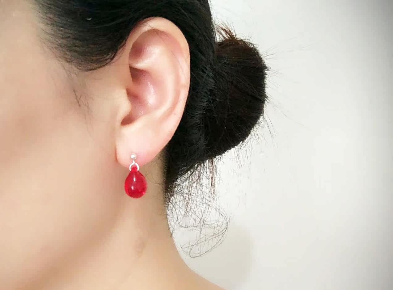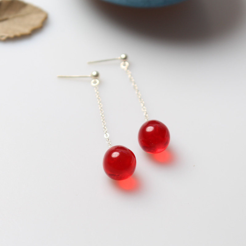 The years are decorated with flares such as the song S925 silver ear nail long version of pure silver ear decoration Women's big red and bright temperament outstanding