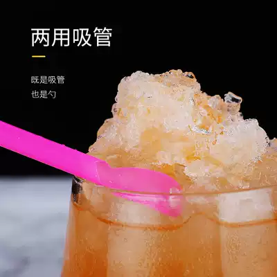 Disposable plastic milk tea juice drink sand ice straw spoon fruit grain with spoon suction tube spoon type straw 100 pack