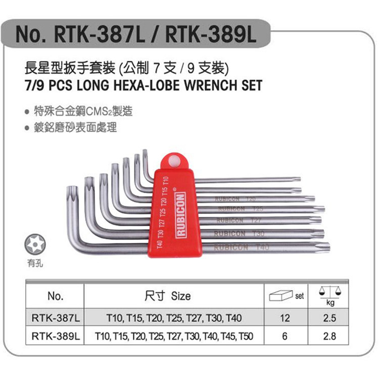 RTK-387L T10-T40 7-pack RTK-389L T10-T50 9-pack