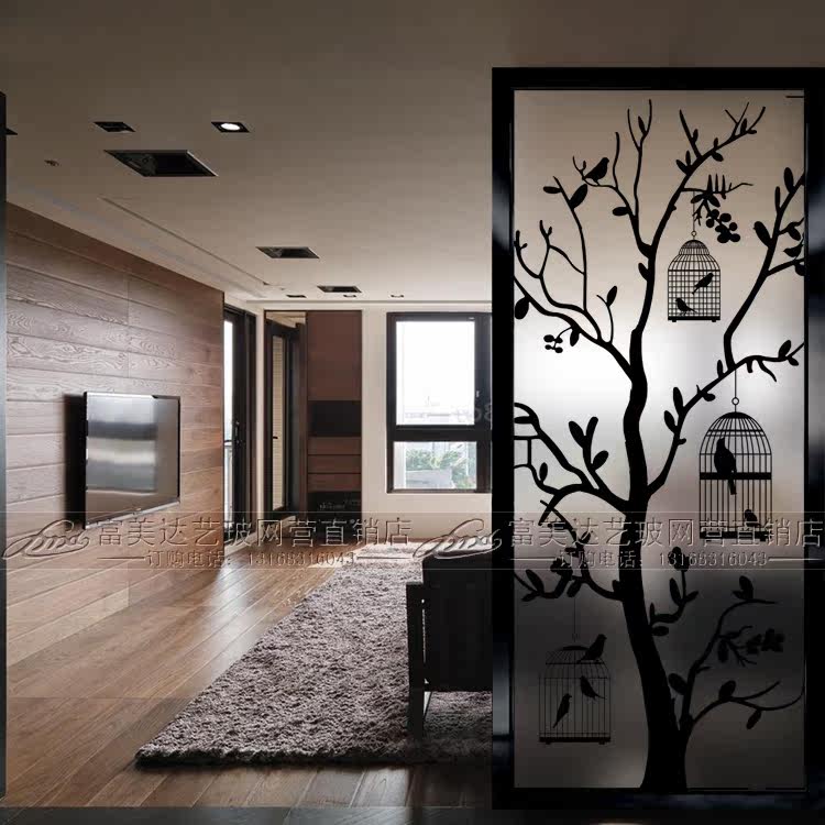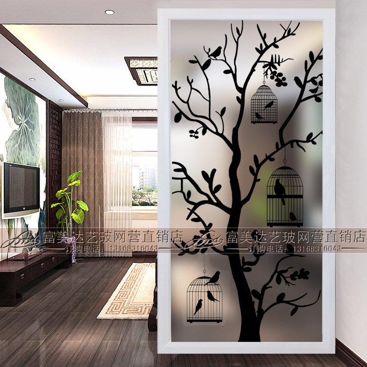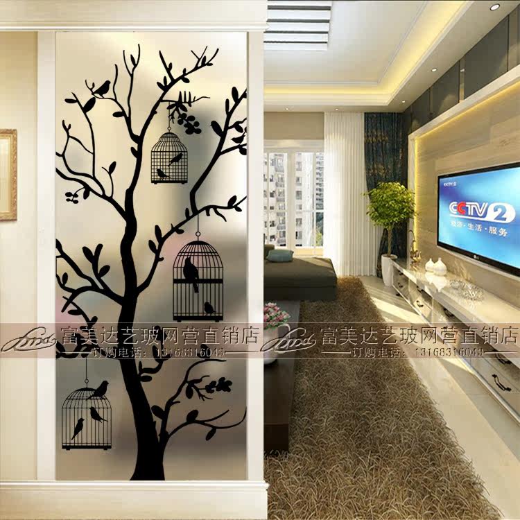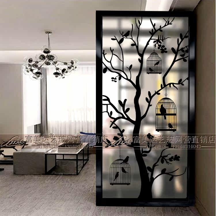 Modern Minimalist Fashion Art Glass Screen Partition Frosted Light Transmission Living-room Shoes Cabinet Genguan Background Wall Magpie