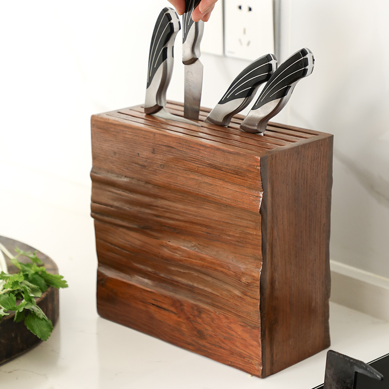 Yili Retro Knife Holder Knife Block Kitchen Supplies Kitchen Knife Shelf Solid Wood Knife Rack Shelf Knife Storage Shelf
