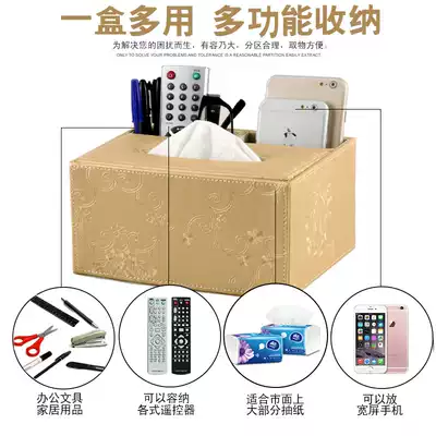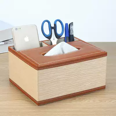 Simple European leather multifunctional sanitary carton tissue box wooden living room coffee table desktop mobile phone remote control storage box