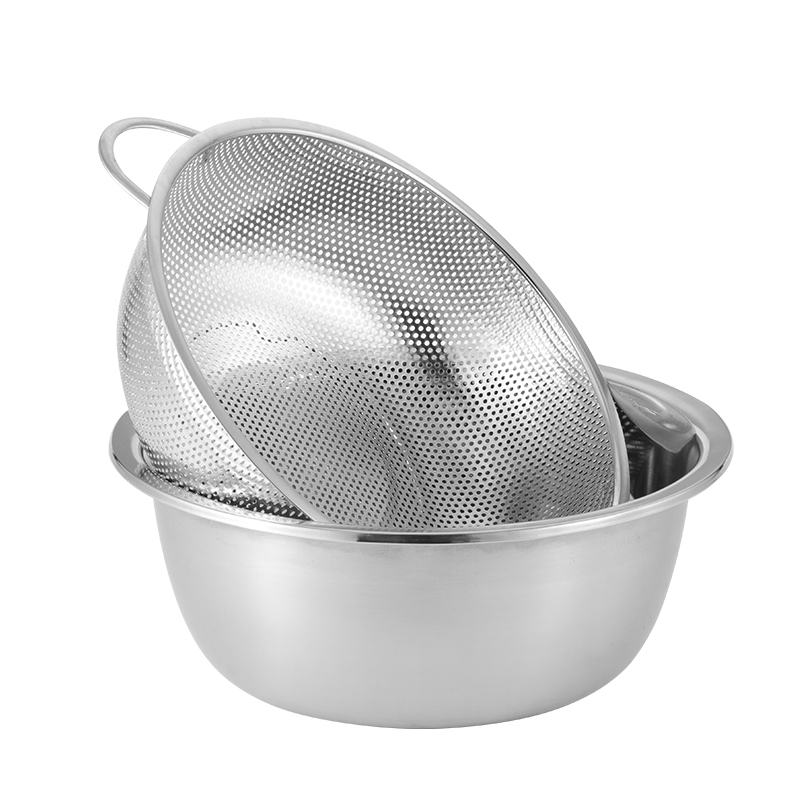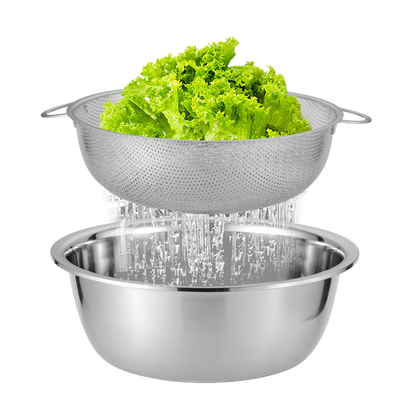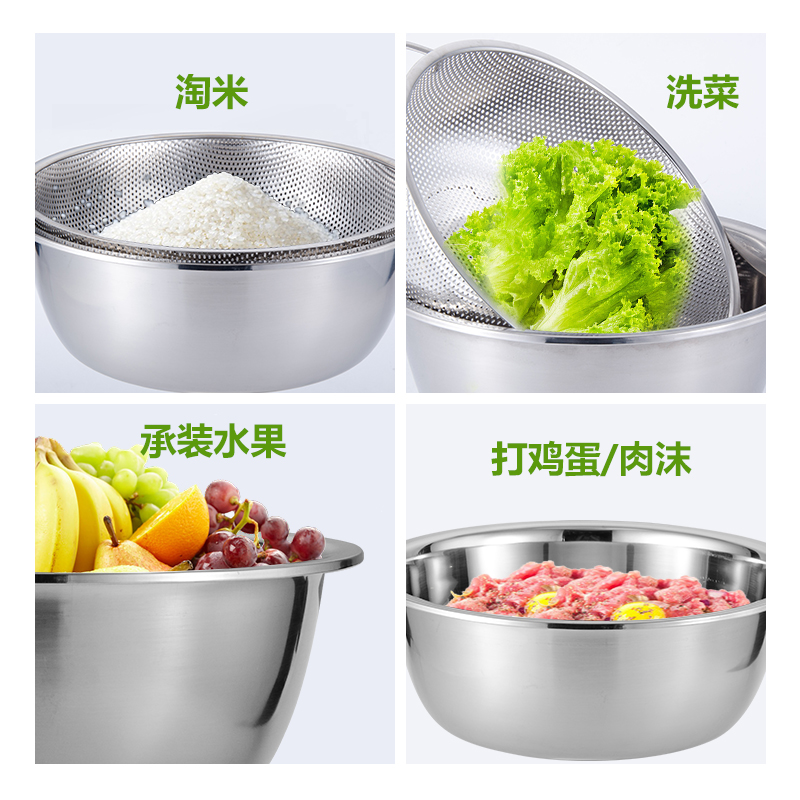 Stainless Steel Basin Round Kitchen Home Basin Subsuit Thickened Bowl Male Beaten Egg And Naughty Rice Drain Wash Vegetable Drain Basin