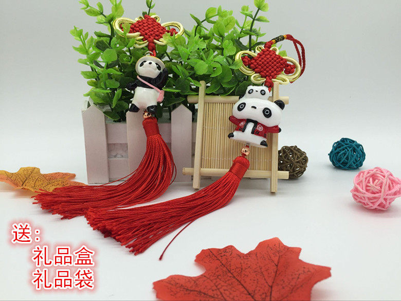Giant Panda China Knot Car Decoration Car Hanging Out Foreign Affairs Gift Chinese Style Gift Ping An Auspicious Car Rearview Mirror