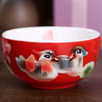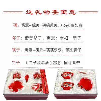 Happy bowl wedding celebration Dragon and phoenix couple bowl to cup Red gift creative set Couple children and grandchildren chopsticks mother dowry
