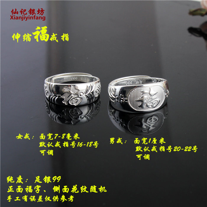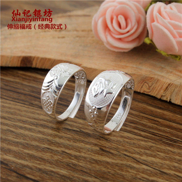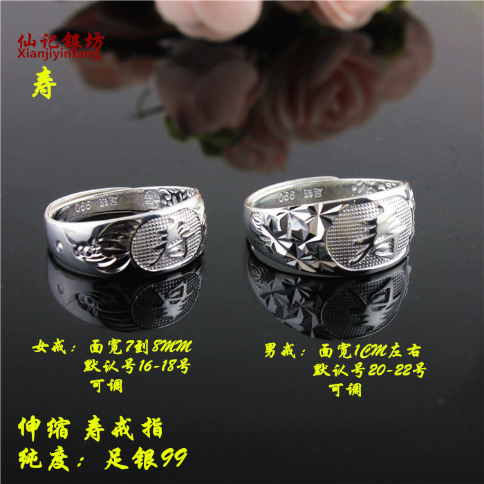 99 foot silver opening live mouth Fu Shou word sterling silver ring male and female elderly middle-aged and elderly people to send mothers