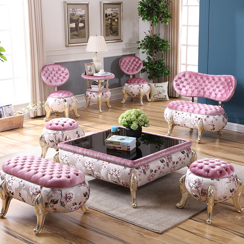 Three-piece double backrest chair shoe changing stool pumpkin stool pumpkin stool single buckle coffee table corner eight-piece set