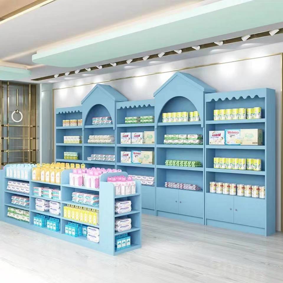 Wooden mother and baby shop milk powder display cabinet shopping mall display shelves children's clothing shelves in the island cabinet pet store display cabinet