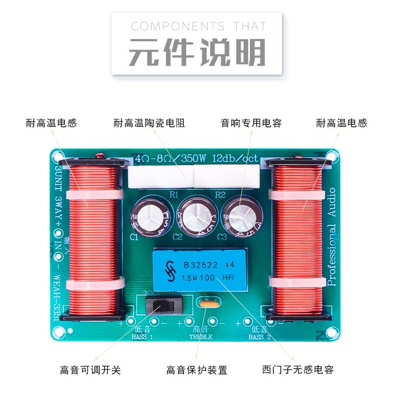 High-low-low-speaker triple-divider home sound three-way frequency-splitting sound enhancing liver WEAH-3351