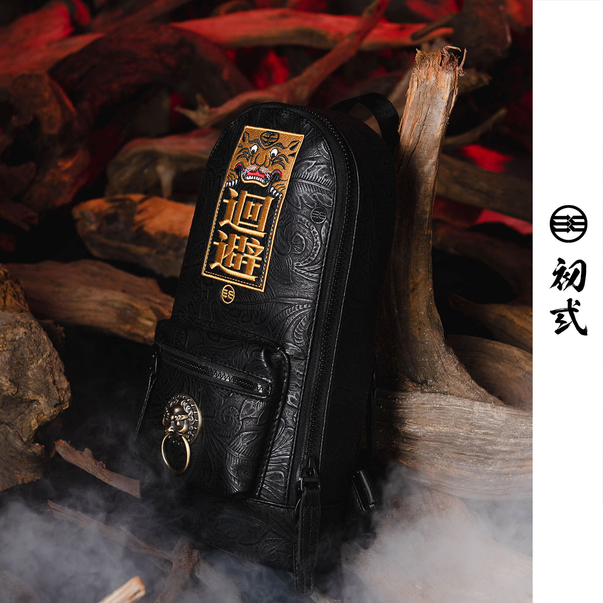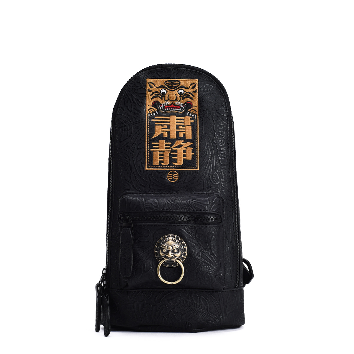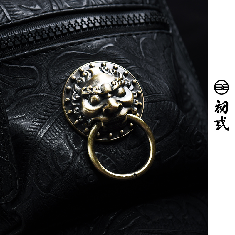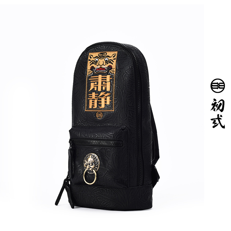 Chu Yi Tide brand Chinese style text avoids quiet embroidery male and female lion head one shoulder diagonal cross chest bag 43055