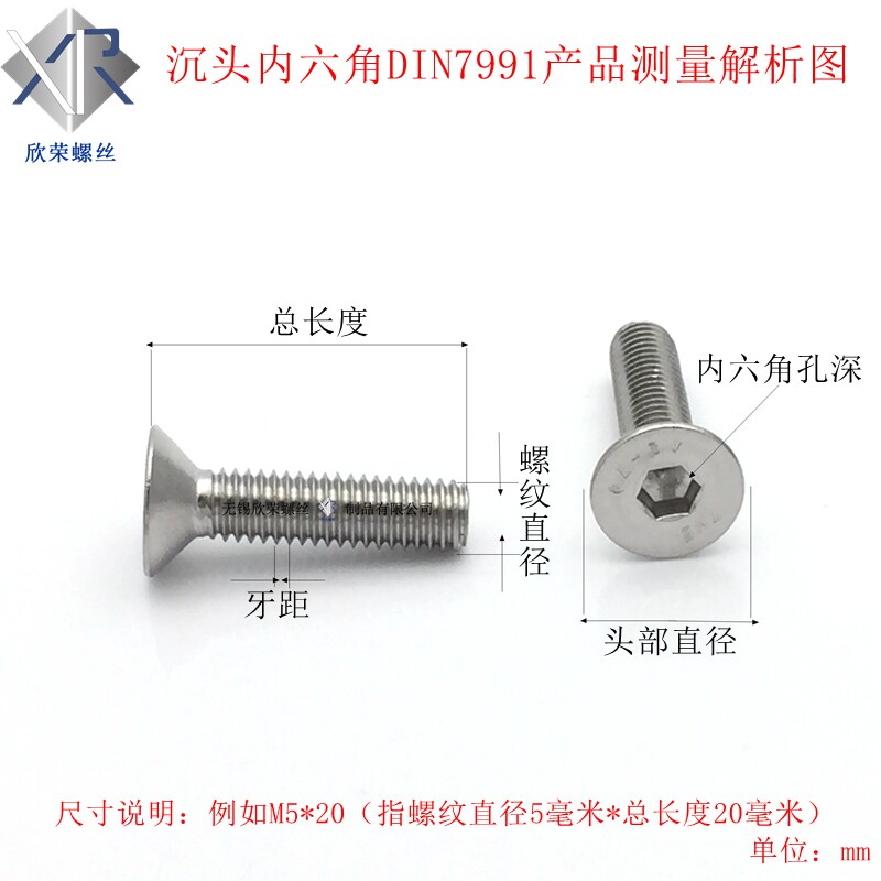 M5 304 stainless steel countersunk head hexagonal machine screw flat head bolt flat cup screws DIN7991 promotion