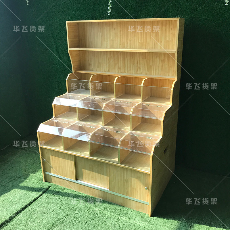 Miscellaneous snack shelf convenience store candy dried fruit wooden shelf supermarket rice cabinet Miscellaneous grain cabinet glass display rack