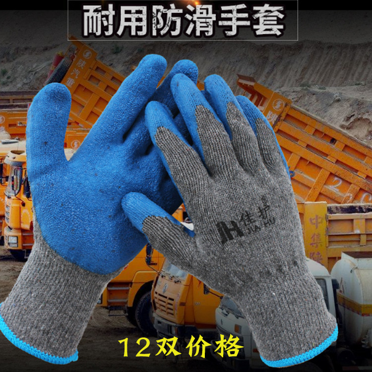 Labor Protection Gloves Dip Gel Gluing Grey Yarn Creamy Anti Wear Wear Resistant Oil Work Protective Cotton Thread Labour Gloves