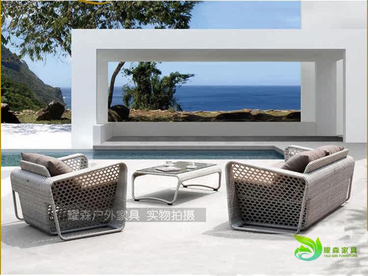 Rattan Chair Sofa Outdoor Courtyard Balcony Simple Rattan Sofa Combination Creative Outdoor Cafe Leisure Club Furniture