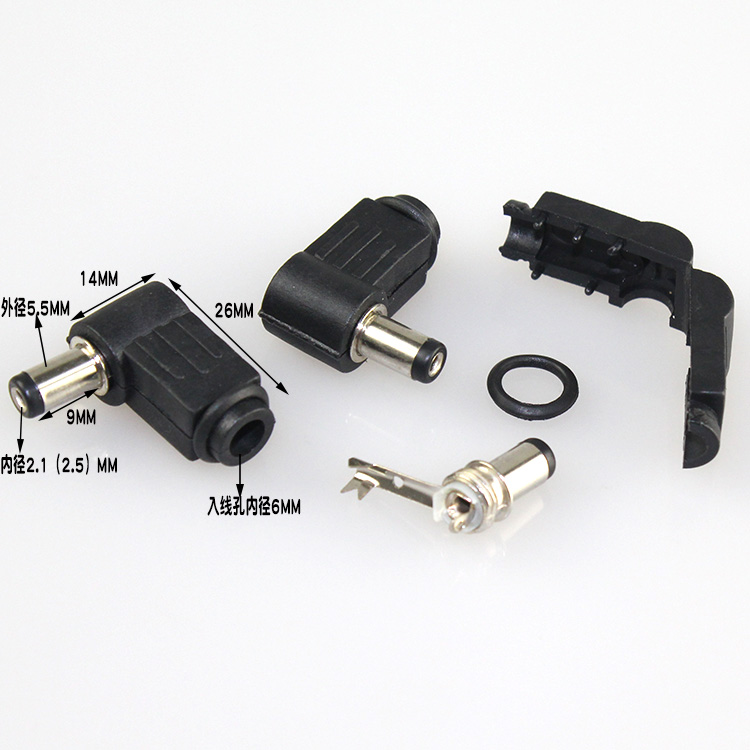 90 DEGREE DC PLUG 5.5-2.1MM DC POWER PLUG 5.5*2.5MM WELDED ELBOW