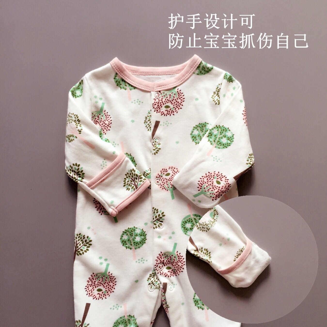 Baby foot jumpsuit Baby thin spring and autumn newborn long-sleeved foot pajamas Pure cotton with socks Haiyi autumn outfit