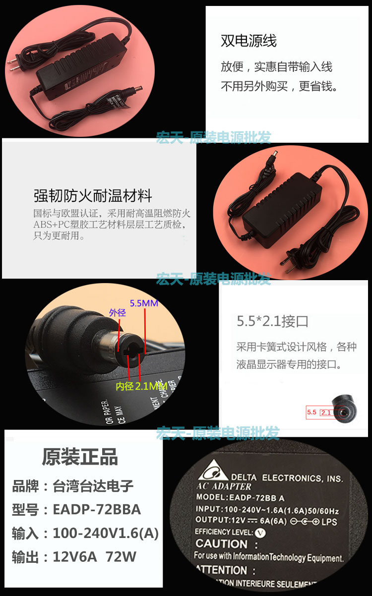 Delta 12v6A Switching Power Supply LED LCD Adapter Monitor 5a 4a 3a Universal 72w