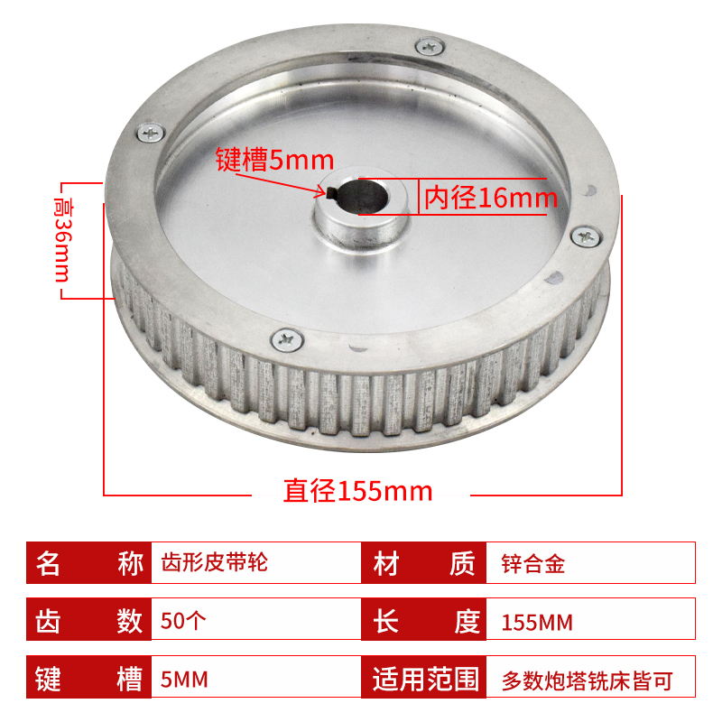 Turret milling machine synchronous pulley Machine tool toothed pulley Gearbox drive pulley Milling machine accessories