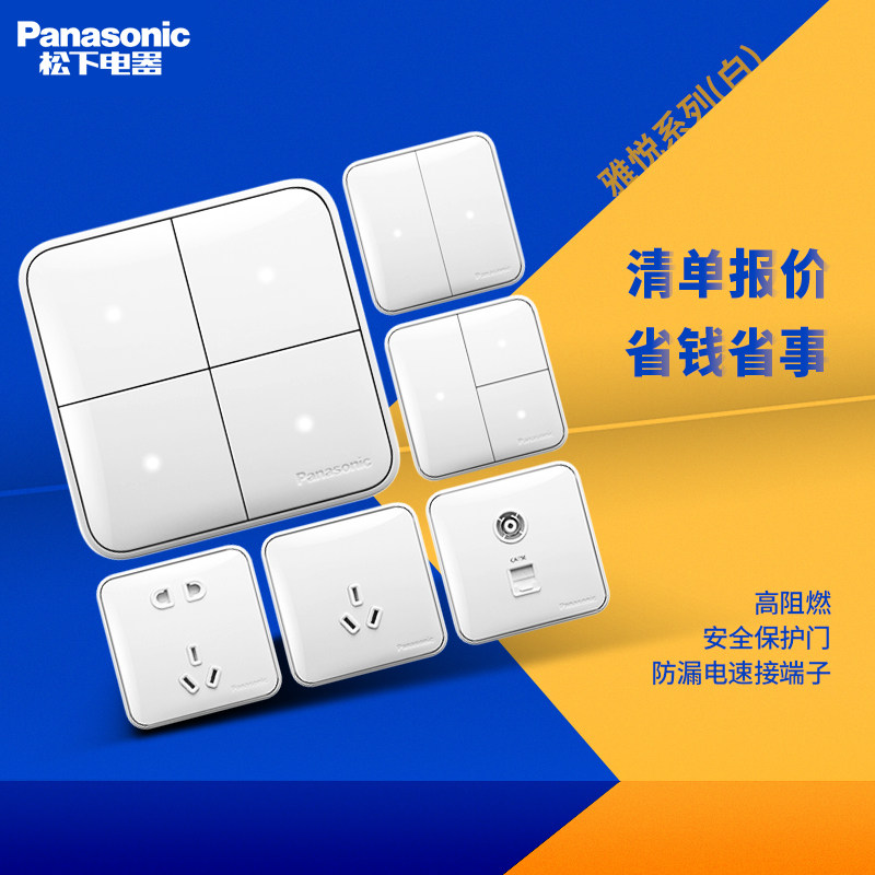 Five-hole socket One open five-hole socket Five-hole + double USB socket Four-hole 16A socket One open three-hole 10A socket One open three-hole 16A socket One open multi-control switch Two-on multi-control switch One open single control - with indicator light One open double control - with indicator light Two open single control - with indicator light Two open double control - with indicator light Three open single control - with indicator light Three open double control - with indicator light Four open single control - with indicator light Four open single control - with indicator light Four open double control - with indicator light Telephone socket Computer socket Telephone + computer socket TV + computer socket Dual computer socket Blank panel