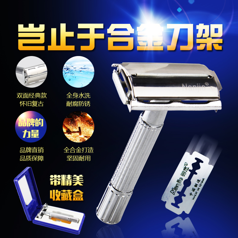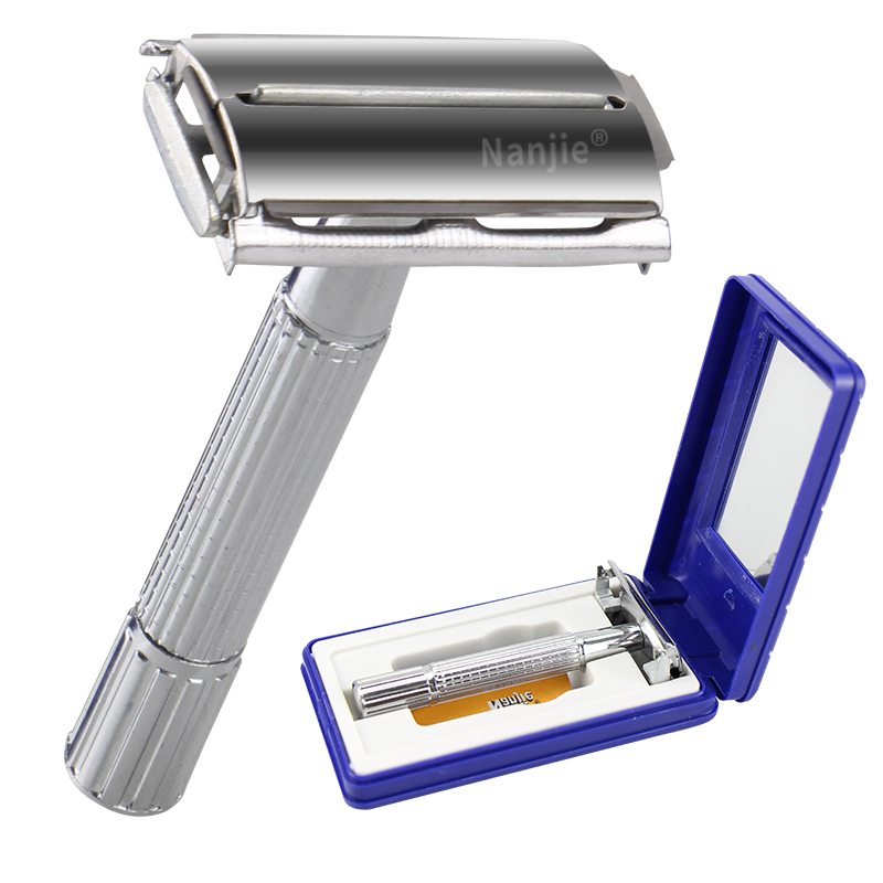 Men's Manual Razor Stainless Steel Vintage Manual Double Sided Razor Holder Shave Full Metal Shave Blade