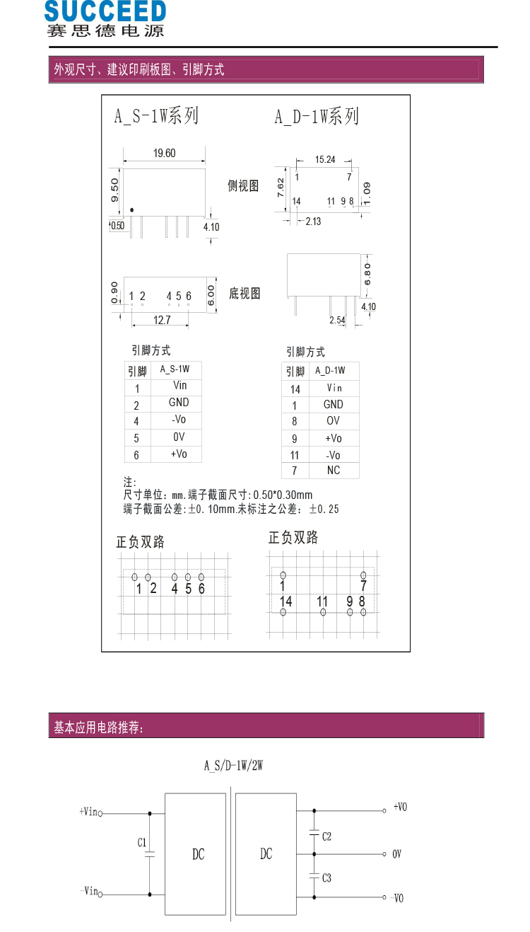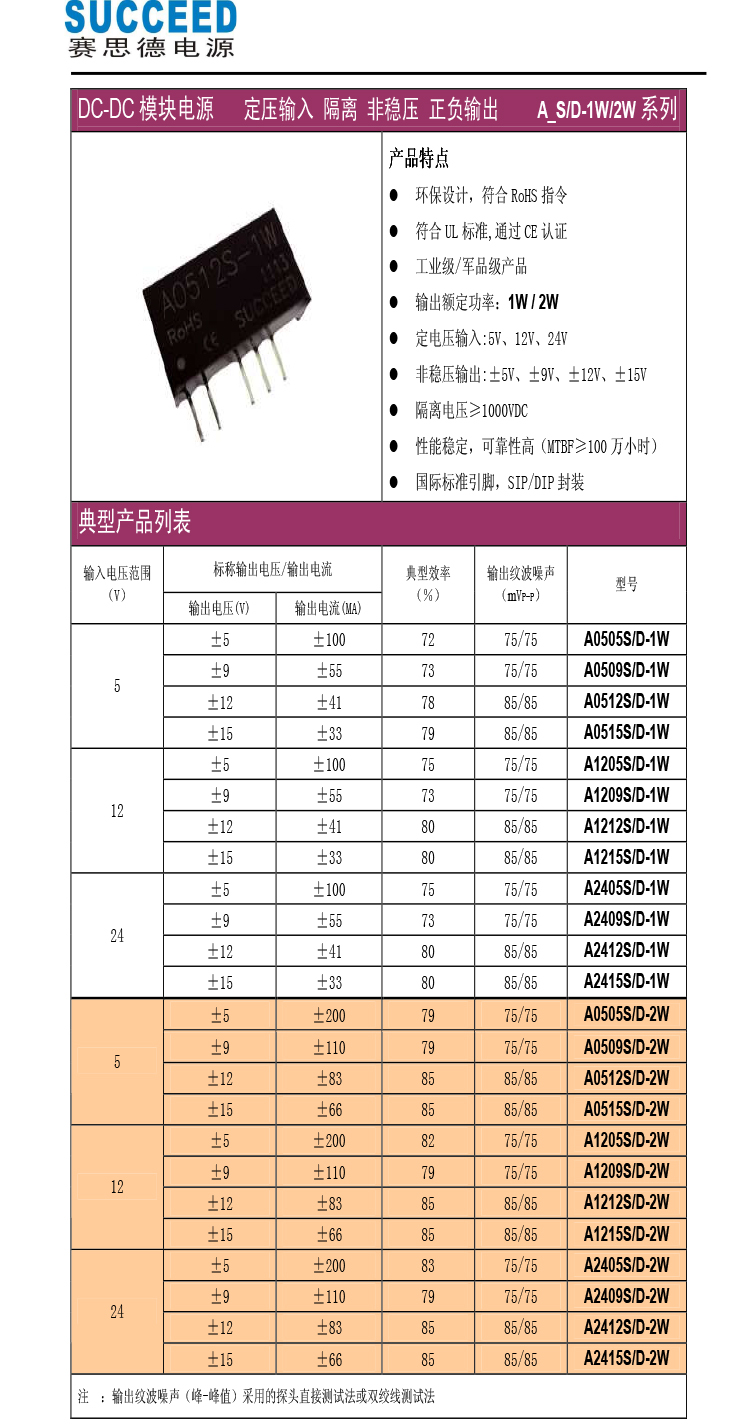 succeed Saiside DC-DC power module A2412S-1W isolated unregulated output ordinary ± dual