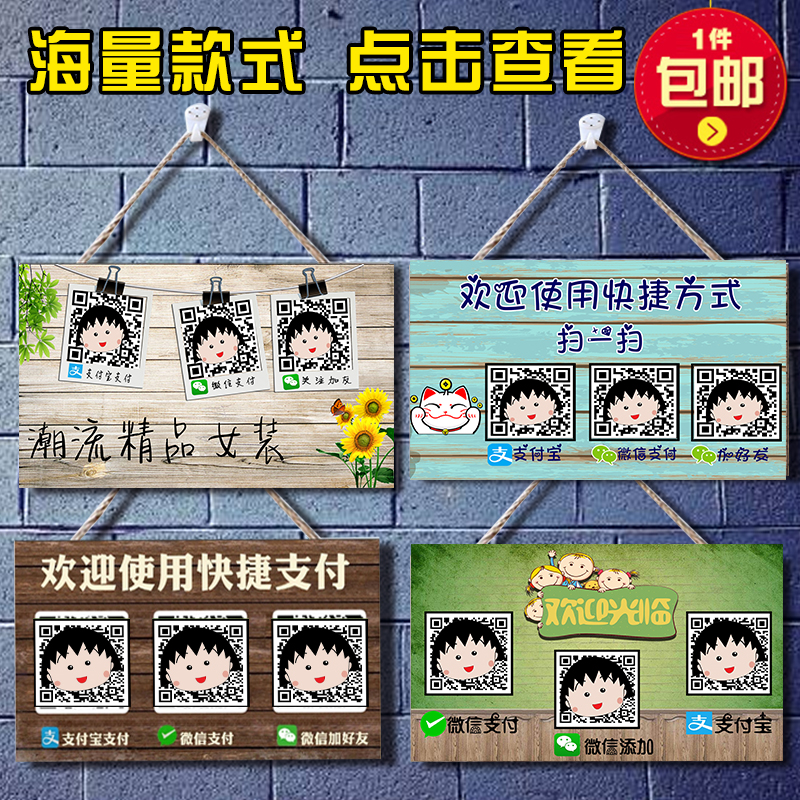 Two-dimensional code WeChat brand is listed custom retro wood payment card door shop ID card personality payment card