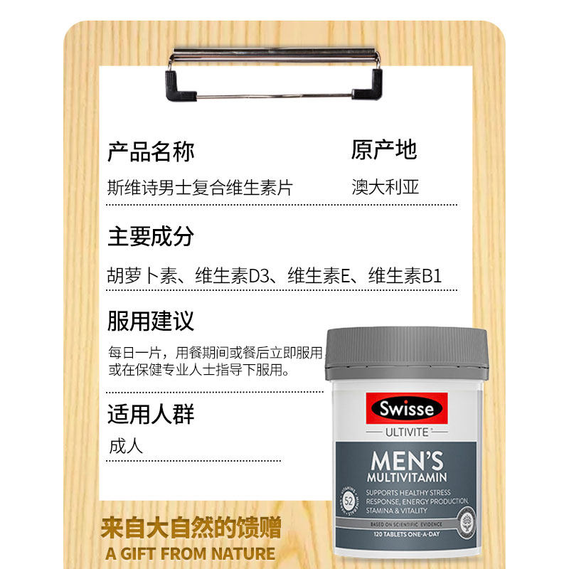 (Bonded) Australian Swisse Swishes Men's Multivitamins Adult Men's Vitality Tablets B Group 120 Tablets