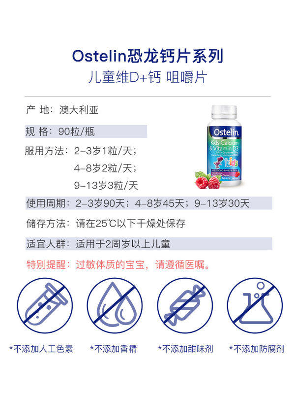 Australian Ostelin osterling children vitamin d calcium tablets vd chewable tablets calcium baby dinosaur 90 tablets