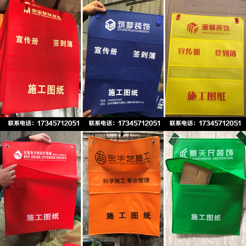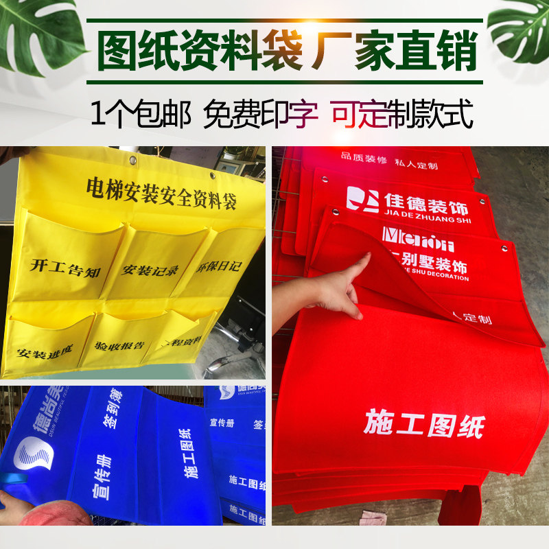 Decoration site information bag non-woven brochure file bag storage bag construction drawings storage document bag customization