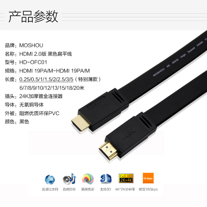 Warcraft 2 0b version HDMI cable 4K@60Hz flat 3D TV high quality cable 0 5 meters 1 meters 8 meters 9 meters 10 meters 13