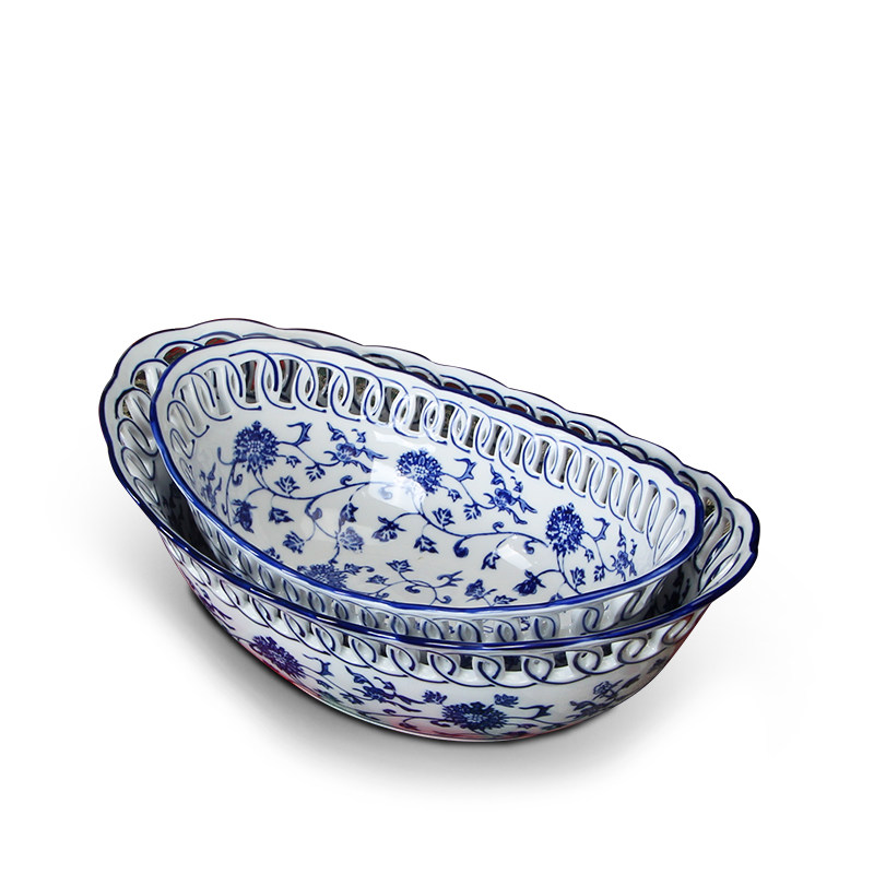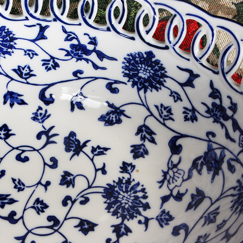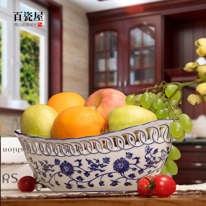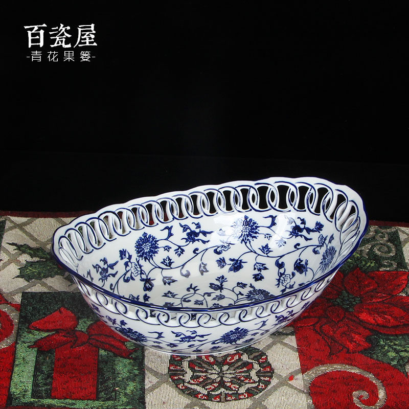 Blue and white ceramic fruit plate living room creative home fruit basket dried fruit Chinese antique Chinese style fruit pot tea table ornaments