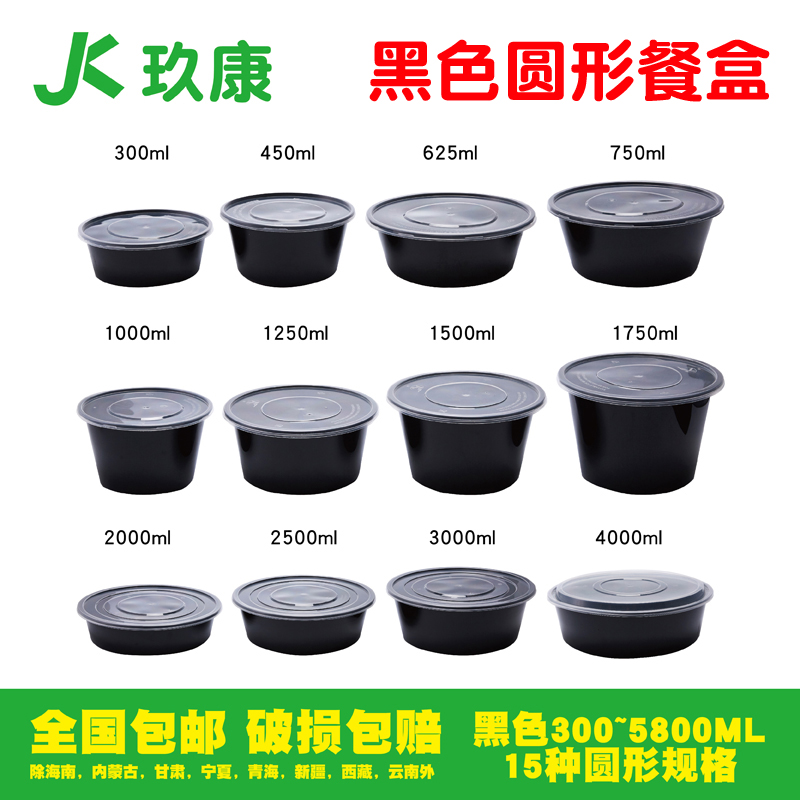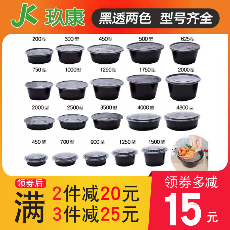Round 1000ml450 Disposable Meal Kit American Black Plastic Packaging Takeaway Fast Food Lunch Box Lunch Soup Bowl
