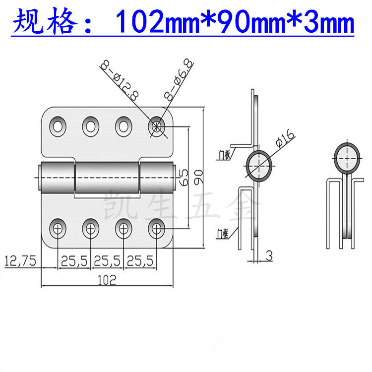 Stainless steel 304 Heavy hinge thickened industrial hinge octapore large heavy industrial hinge 102 * 90 * 3mm