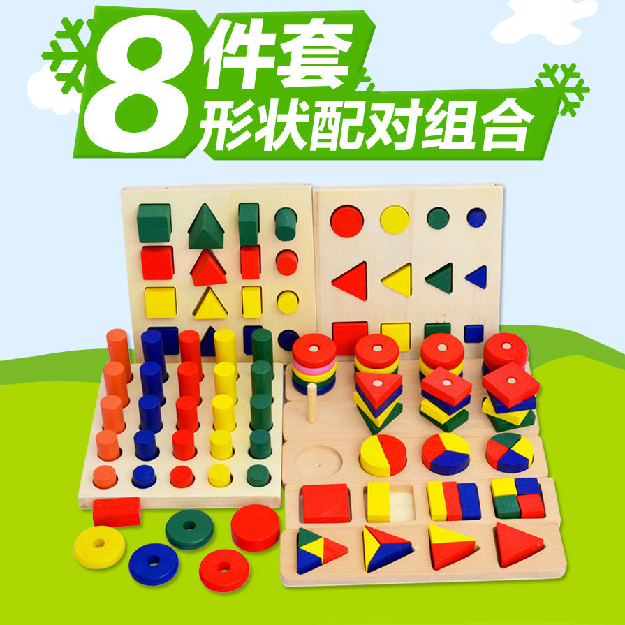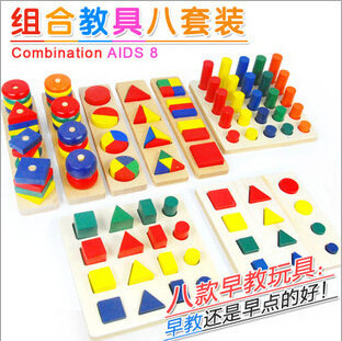 Kindergarten Monte geometric teaching aids 8 Eight sets of sets Family Montessori children Early teaching building blocks Toys