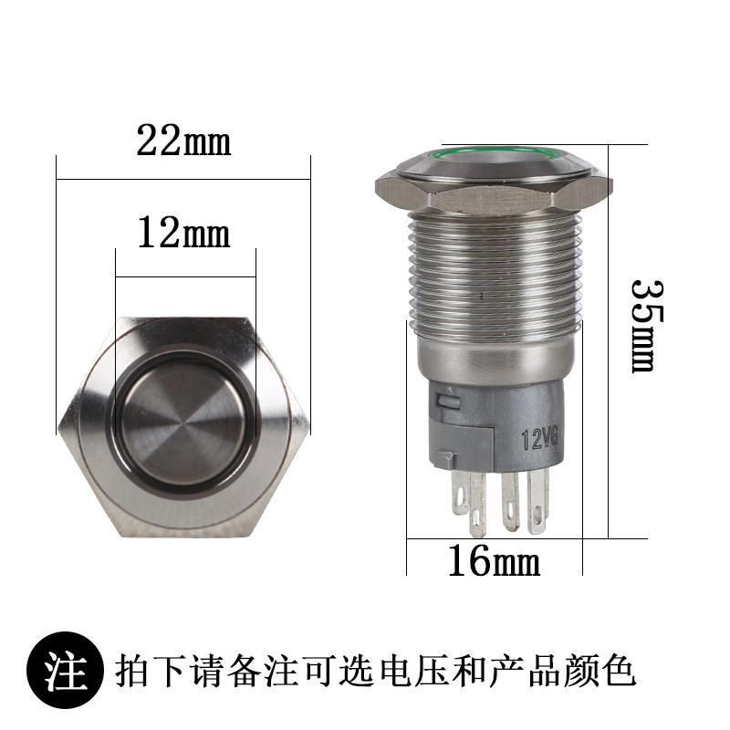 16mm metal button LED lamp high head power symbol self-reset button switch Small computer switch