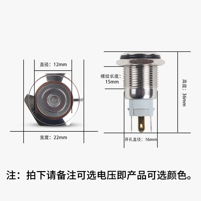 16MM metal button self lock waterproof rust ring single point LED light source light switch plugin