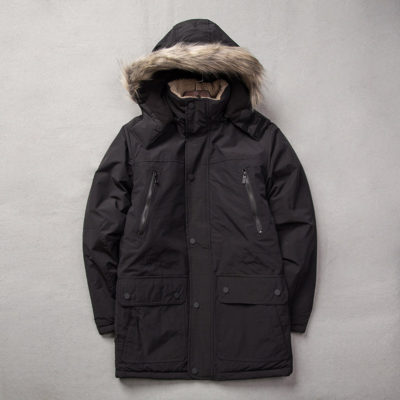Korean version of outdoor sports Korean version of thickened cotton clothing men's medium and long version with hair collar large size men's cotton coat Winter quilted jacket men