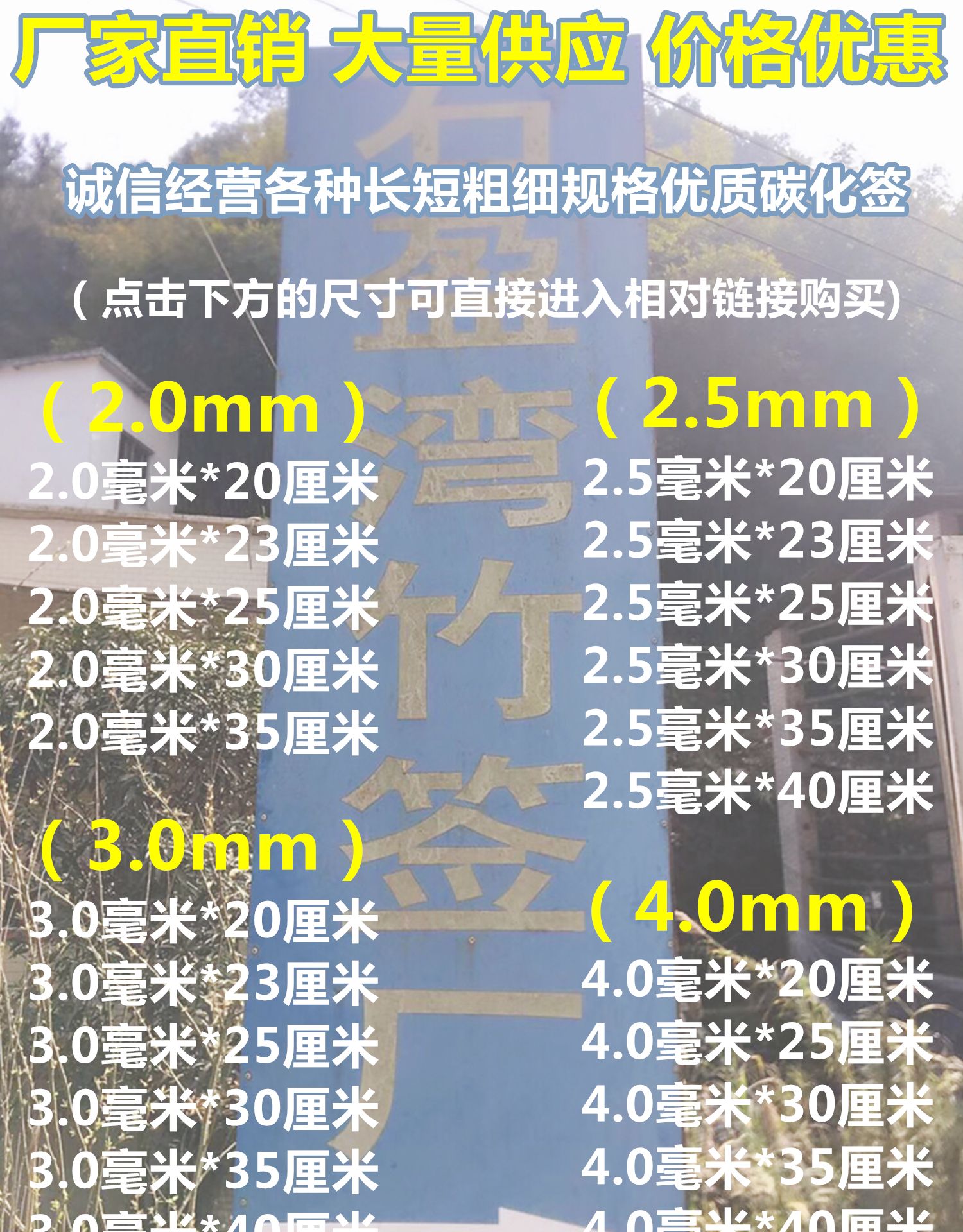 Barbecue Bamboo Sign Wholesale Strings of fragrant goat meat Spicy Hot 2 5mm * 20 23cm High hardness carbonated bamboo signature