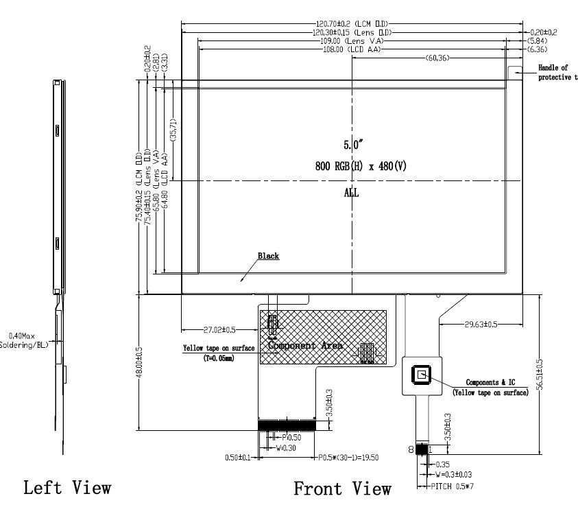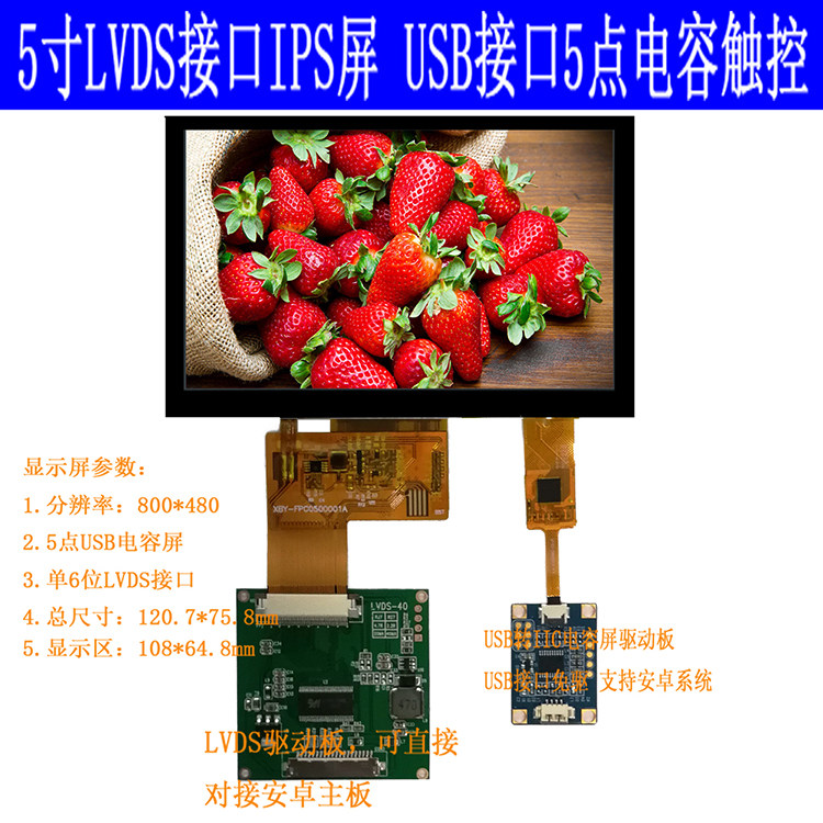 Hot selling 5 inch RGB LCD screen 800x480 resolution IPS full viewing angle optional board capacitive touch screen