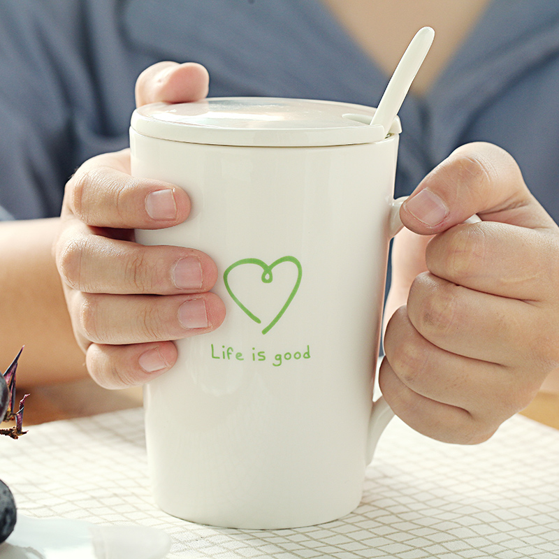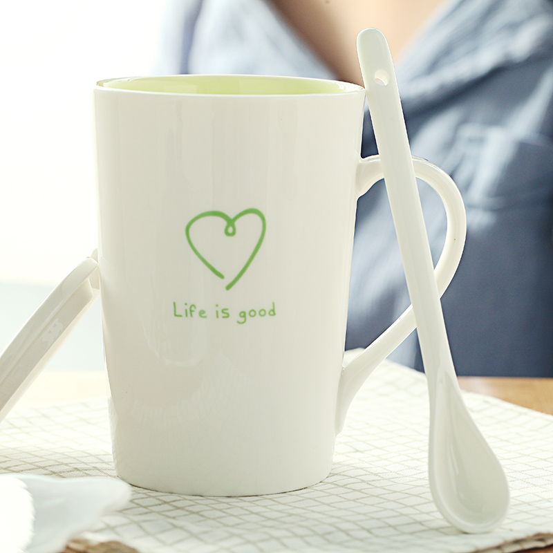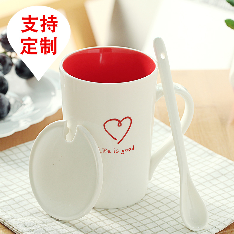 Love inner color cup Red porcelain cover porcelain spoon Love inner color cup Blue porcelain cover porcelain spoon Love inner color cup Pink porcelain cover porcelain spoon Love inner color cup Yellow porcelain cover porcelain spoon Love inner color cup